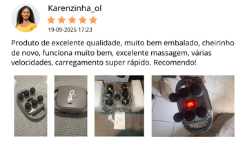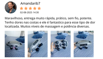 Leve, prático e recarregável, você pode usar seu massageador em casa, no trabalho ou onde quiser.